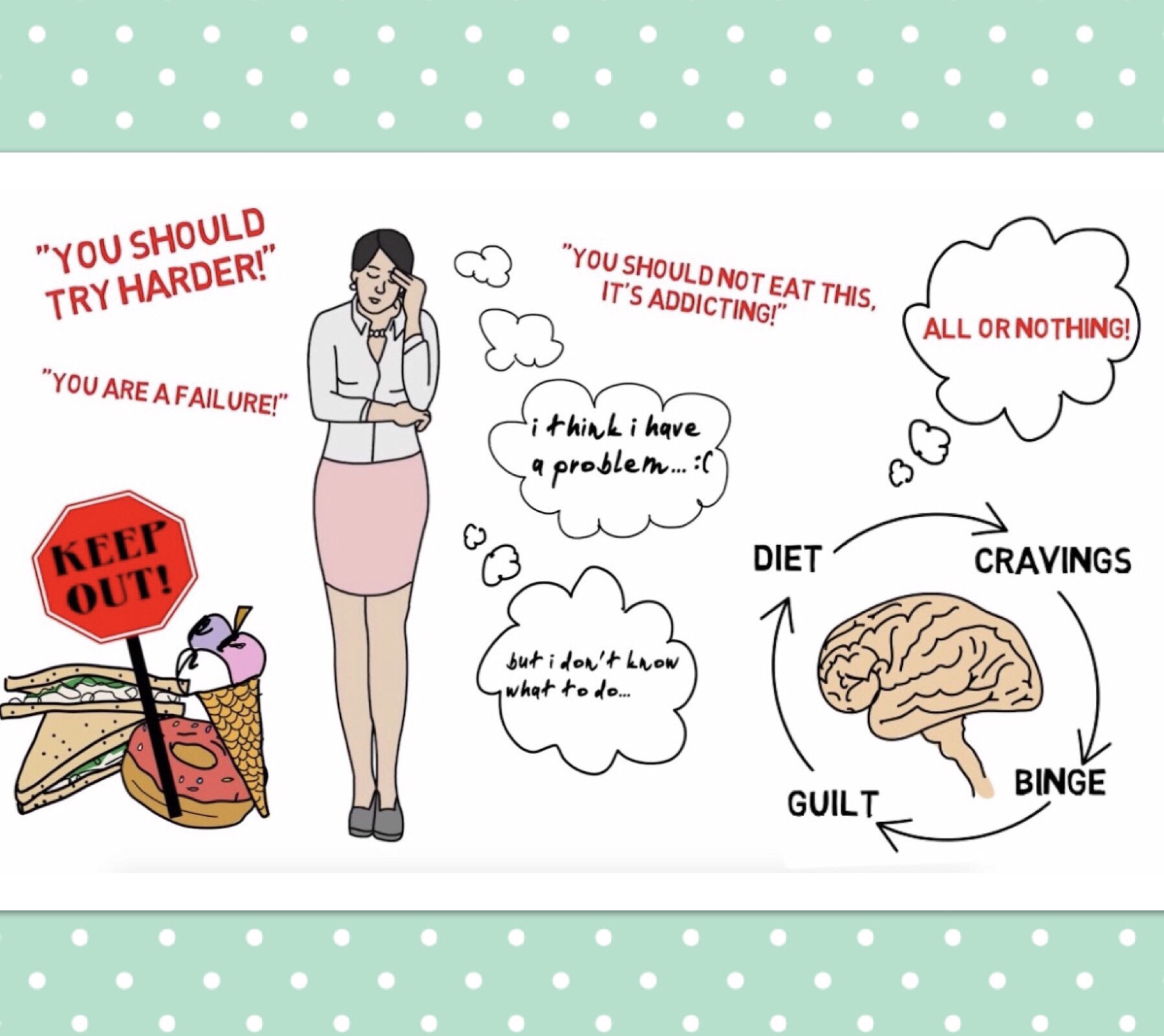 -To sum it up…. I have had a few sober months with no relapses and in my heart I truly fully believe that I have over come this haunting disorder that over took me. I listen to my worth and my body. I provide and give it what it wants and needs. No longer under a society spell to satisfy some worthy scale, i no longer only eat a super small amount jus to get me by, I no longer specifically eat only what looks healthy and obsess over the good foods and I no longer throw up after eating a meal, because of feeling empowered when I do or feeling unworthy for that meal.