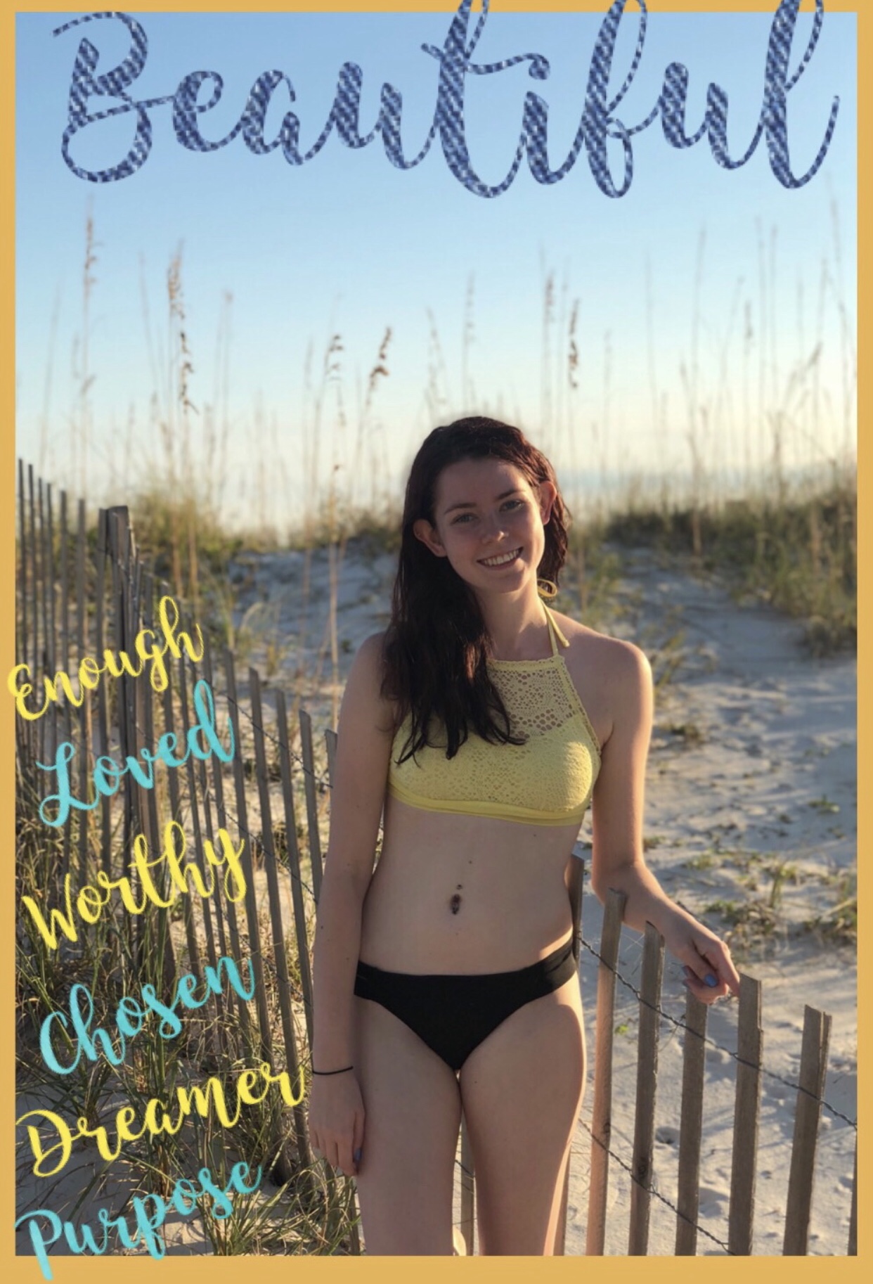 I have finally gotten the courage to share my story here after a picture was taken of me at the beach October 18th. This was a turning point for me. That weekend was filled with so much love and care by people that were rather new in my life and had no idea about my struggle. A simple photo of me was taken in my bikini after eating and feeling so much love on the trip. Not thanking twice about turning back to my (bulimia, anorexia, or orthorexia). This is when I realized I had made a change in my life and I didn’t even realize it. This photo reminds me everyday as my screensaver on my phone, of the beauty God has given me and that I must take care of my body. It’s the only one I ever will get. This photo flooded me with so much love for myself and my body and mind. It was the first photo of myself I was just so care free and truly comfortable in my own skin! It just showed me a journey that flashed like a video In my mind of where I was to where I am and where I can be! So beautiful and truly brought me to tears, I was literally bawling.